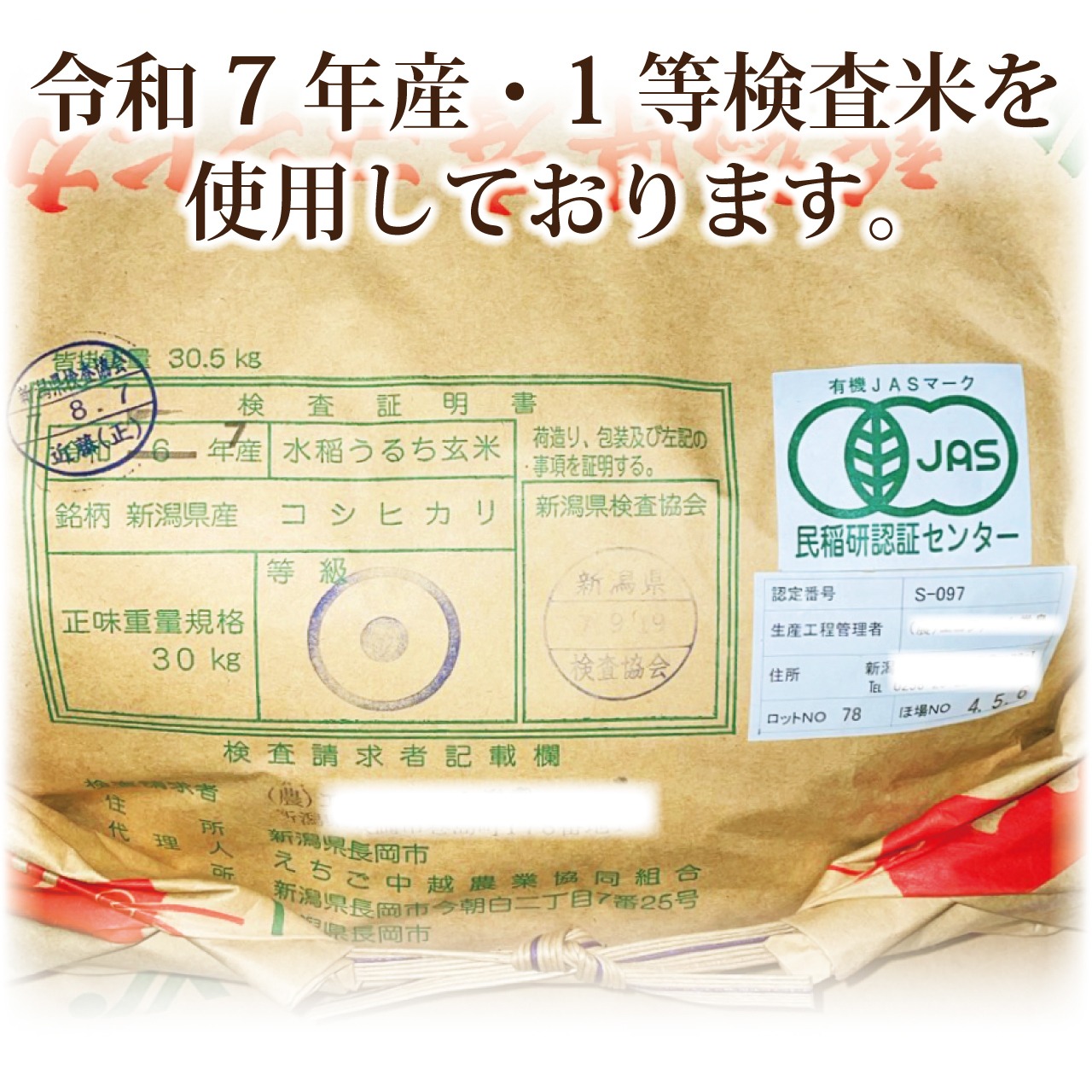 ご家族にアトピー性疾患の方がおられる方や、赤ちゃんが初めて食べられるというご家族には、ぜひ農薬を使用していないお米をお勧めしています。安全性No.1!農家が時間をかけ丁寧に育て、国内で最も厳しい有機JAS食品検査をクリアした無農薬・無化学肥料栽培のお米です。安全で美味しい最高級のこしひかりを、ぜひ玄米でご堪能ください。